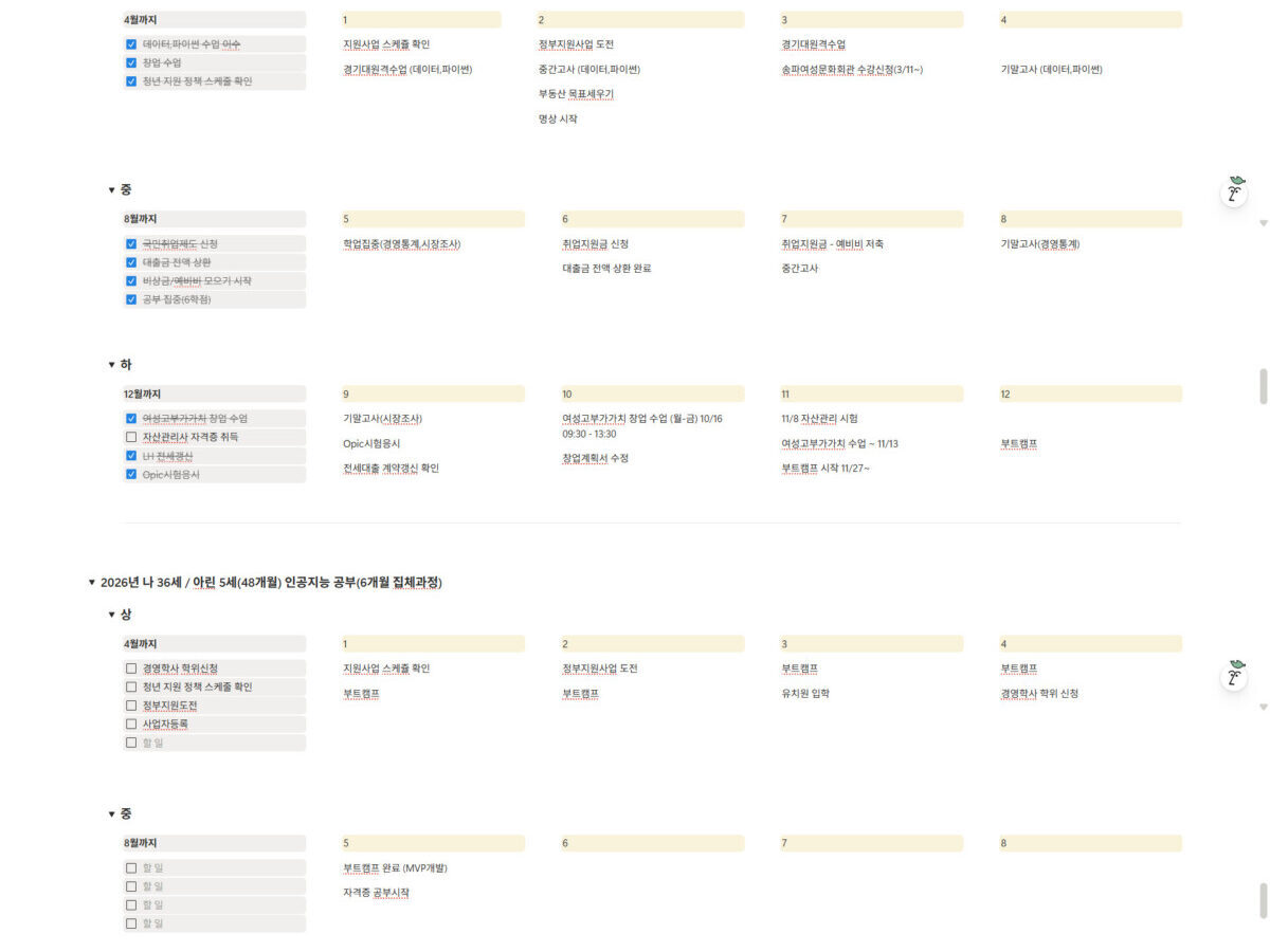실제로 내가 24년부터 계획한 것들은 80% 이상 이루었고, 중간점검을 통해 목표를 관리하면서 마치 자산관리 포트폴리오를 다시 짜듯 내 인생관리 포트폴리오를 지속적으로 손보게 된다.