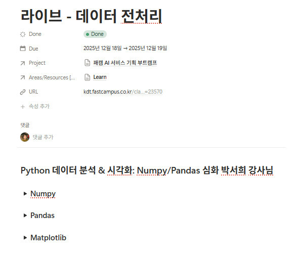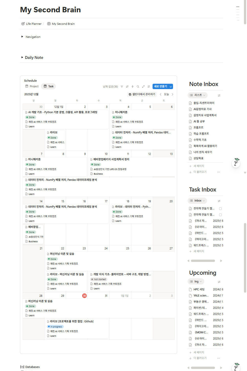 오늘 까지 전체 강의 중 라이브 강의는 총 4회차까지 진행중이고, 온라인 강의를 통해서 자신의 실력과 상황에 맞게 강의를 진행해오는 중이다. 여전히 나의 second brain의 스케줄을 통해 관리중이고 강의가 끝나면 노트를 하면서 복습을 진행하고있다.