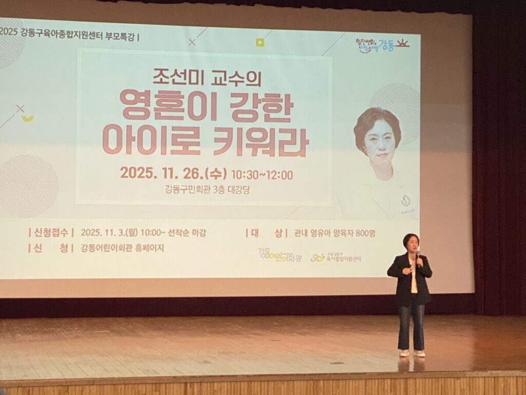 부트캠프가 시작되고 한참이나 바쁜 와중에 미리 신청해둔 부모교육에 참여하기 위해 외출신청을 하고 잠시 다녀왔다. 이번 강의는 온라인에서 유명한 조선미 교수님이 직접 오셔서 강의를 진행해 주셨기에 강동 구민회관에 800석이 넘는 자리를 가득 메울 만큼 많은 사람들이 왔다.